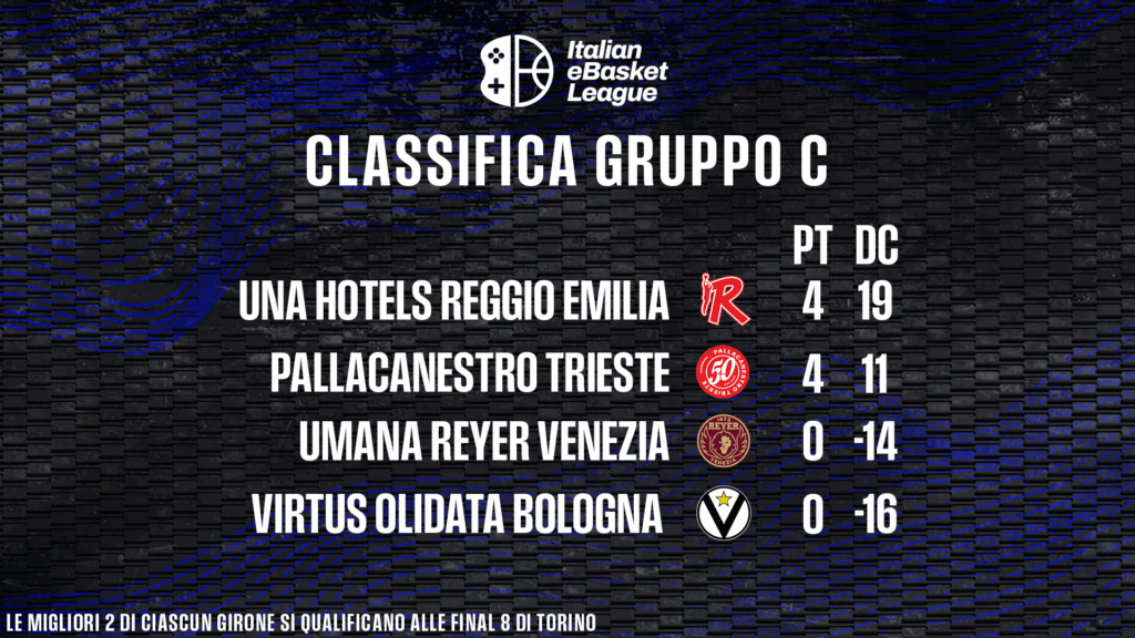Ancora una prova convincente per l’Una Hotels Reggio Emilia, che si sbarazza 22-15 dell’Umana Reyer Venezia. Nel Girone C sale a 4 punti anche la Pallacanestro Trieste, vincente sulla Virtus Olidata Bologna 22-18.