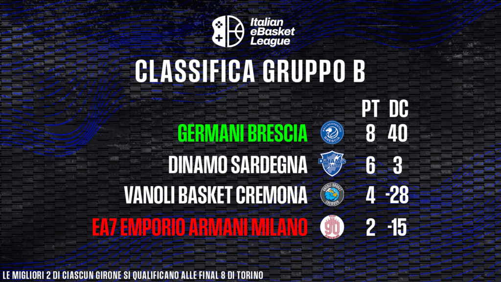 Nel Girone B la Dinamo Sardegna fa suo il big match contro la Pallacanestro Brescia (21-18) e qualifica al Final Event. Per i bresciani sconfitta indolore, da primi nel raggruppamento sono già certi di essere a Torino. A tavolino la vittoria di Milano su Cremona.