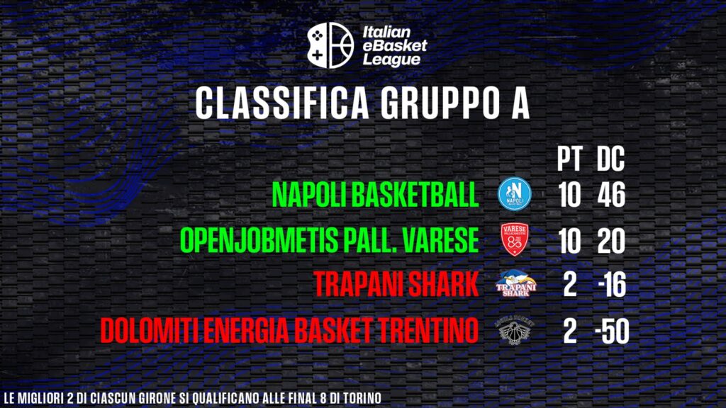 Nel Girone A l’ultima giornata non fa altro che certificare il duopolio di Napoli e Varese, rispettivamente vincenti su Trapani Shark (21-16) e Pallacanestro Varese (22-8).