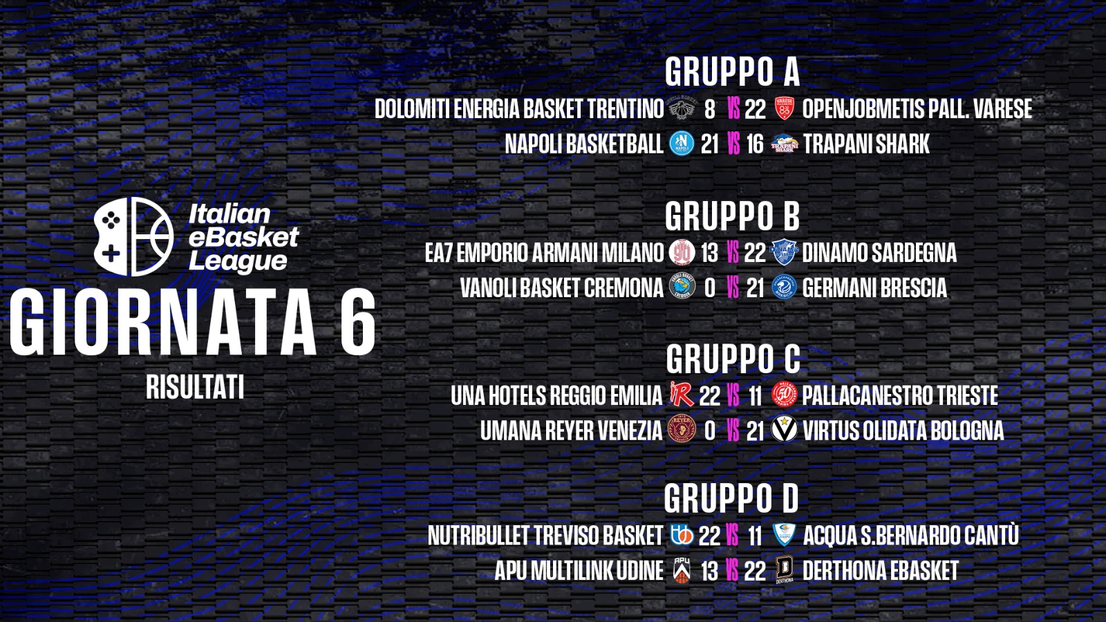 Sesta e ultima giornata di gare per l’Italian eBasket League, il torneo su NBA2k26 organizzato dalla Federazione Italiana Pallacanestro e dalla Lega Basket Serie A.